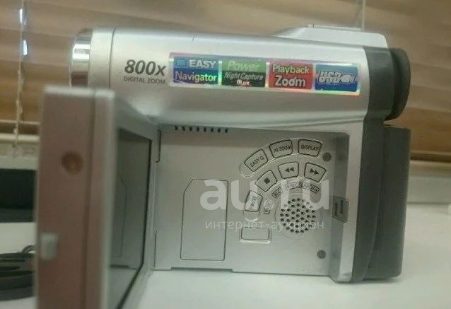 Цифровая видеокамера формата Mini DV с ПЗС-матрицей на 800 тыс. пикселей. Может использоваться как Web-камера с передачей потокового видео через USB. 2,5-дюймовый ЖК-экран. Цифровой стабилизатор изображения. Фотосъемка с записью на ленту.