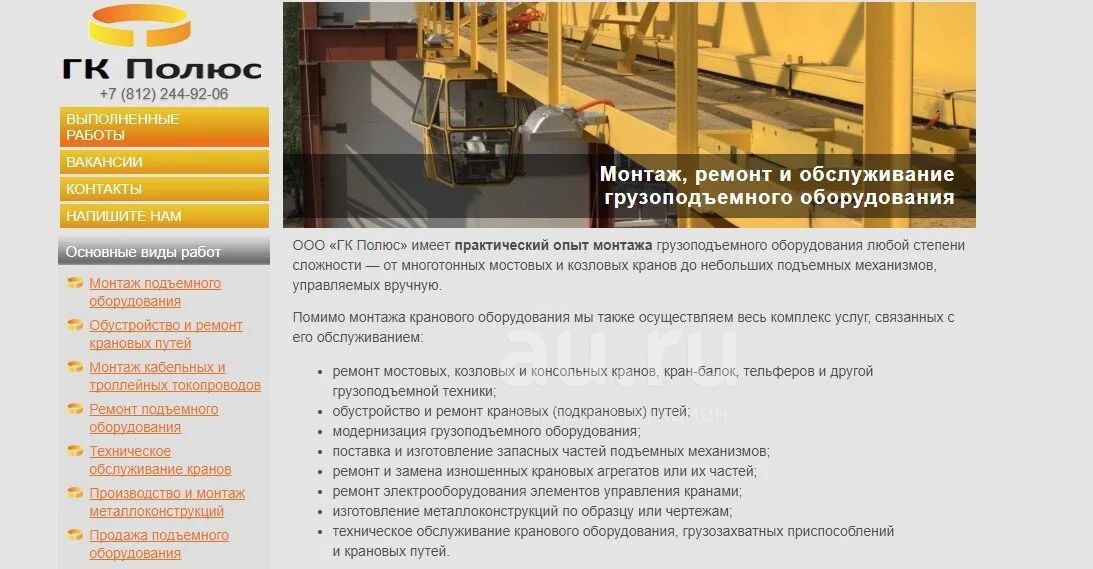 Сайт по монтажу и сервисному обслуживанию грузоподъемного оборудования