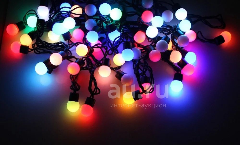 Гирлянда шарики ф50мм, разноцветные, уличная, длина 10м. Постоянное свечение, режимов нет. 220в.