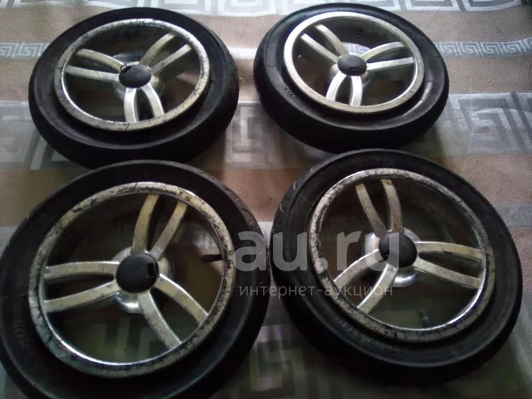 Колеса для коляски.Состояние на фото.Надо накачивать,у двух нет нипилей.Шины POLE STAR INFLATE TO 20 P.S.I 210 KPA.12.5*21/4.