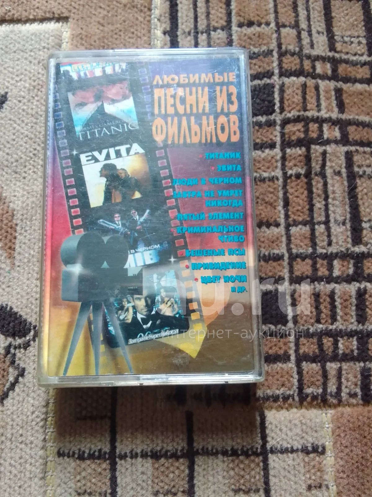 Аудиокассета "Любимые песни из фильмов (Титаник,Эвита,Люди в черном, завтра не умрет никогда,пятый элемент,криминальное чтиво,бешеные псы,приведение,цвет ночи и др