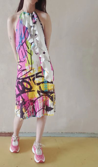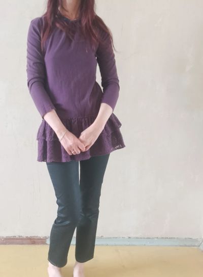 Размер тут не шибко важен, крой оверсайз, на фото платье на мне, а я 42 размера. Но кому важны такие подробности, то вот: полуобхват горловины 27, плеч 46, груди 58, талии 64, подола 77, рукава 13,5 см. Длина рукава 55, длина платья от плеча до подола 108 см. Территориально Дунайская.
