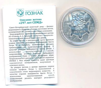 1 000 руб.Россия 2019 Медаль Жетон 295 лет Санкт-Петербургский монетный двор Го...