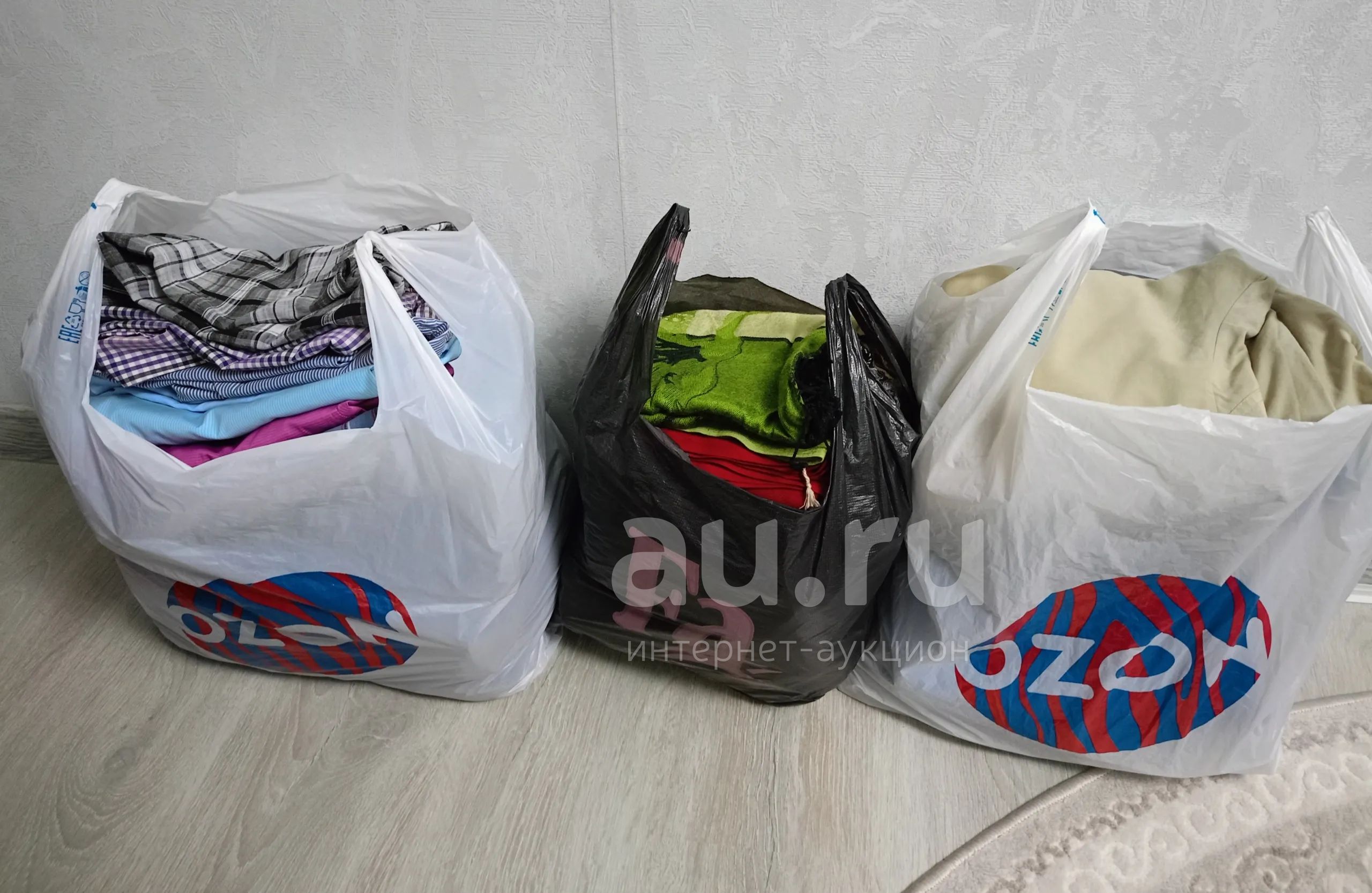 📦 Пакеты вещие мужские (белые пакеты) + женские (чёрный пакет) разных размеров ( от 50 до 54 размера. В пакетах ветровки, футболки, рубашки, жемпера, брюки, шарфы, костюмы и кофты. Состояние у 90% вещей хорошее, без дефектов