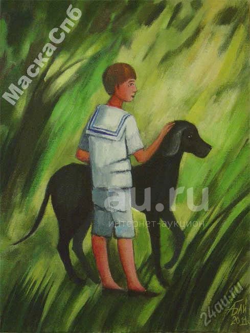 Картина Мальчик с догом. х/м 30х40, Анна Бай