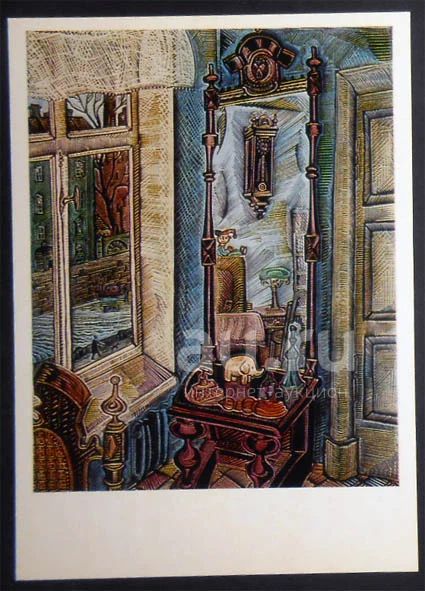 Открытка Блинов. Интерьер с зеркалом. 1979. (07866о)