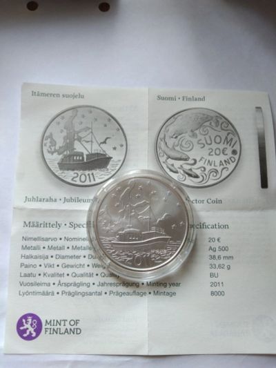 5 750руб.Финляндия 20 евро 1996 Олавинлинна Proof cеребро Ag сертификат капсула
