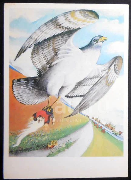 Открытка Кондакова. Братья Гримм. Беляночка и Розочка. Гном и орел. 1986. (11930о)