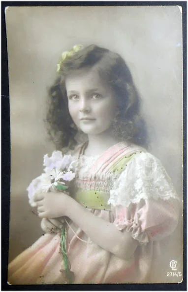 Открытка Дети. Девочка с цветами. Дореволюционная. Штамп 1912. Подписана. (12078о)