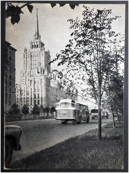 Открытка Москва. Кутузовский проспект. Высотка автобус. 1958. Чистая. (12400о)