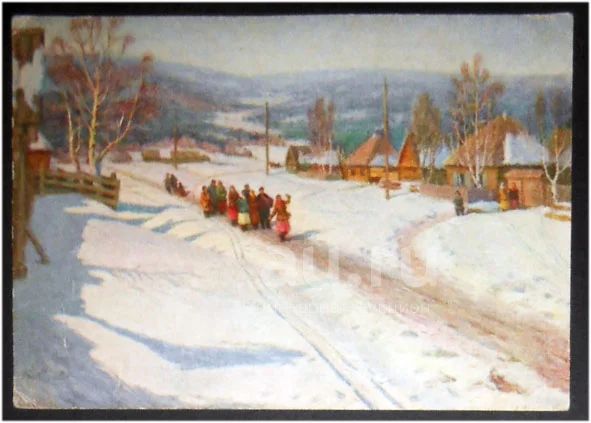Открытка Качальский. Уральские частушки. Село деревня зима. 1955. Чистая. (12607о)