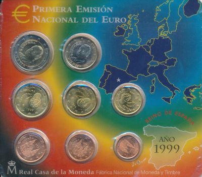Испания 2002 официальный набор евромонет 8шт блистер