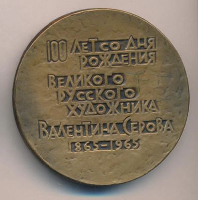 СССР Медаль 1965 ЛМД Валентин Серов 100 лет Медальер М. Б. Романовская D - 60mm тираж 250 экз.