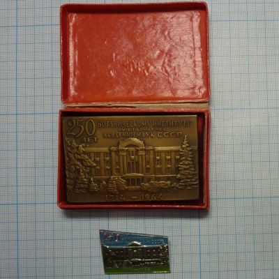 СССР 1965 Плакета и знак 250 лет Ботаническому институту им. В.Л. Комарова ЛМД 70х45mm Томпак