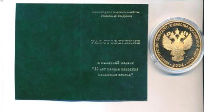 Россия 2004 Медаль 50 лет Начало освоения целинных земель D-50 mm м/н желт ММД капсула удостоверение