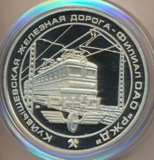 Россия 2004 Медаль 130 лет Куйбышевская железная дорога D-50 mm мельхиор ММД капсула коробка