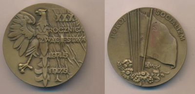 Польша 1975 медаль 30 лет победы Мир Социализм D-69мм тяж мет 157гр Томпак футляр