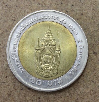 Таиланд 10 бат 2007 года. 80 лет со дня рождения Короля Рамы IX. Биметалл.