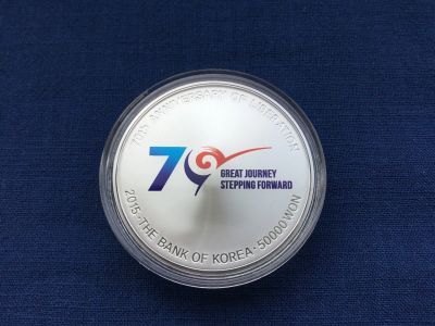 Южная Корея 50000 вон 2015 год 70 лет Освобождения от Японии. Вторая мировая война. Серебро 999 Пруф