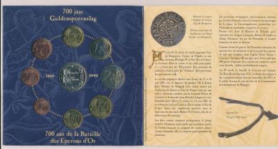 Бельгия 2002 Набор евро монет UNC + жетон 700 лет Битва при Куртре или Битва шпор