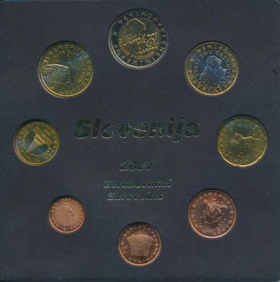 Словения 2007 Набор евро монет Упаковка картонный футляр-коробка