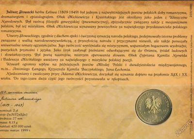 Польша 1999 2 злотых Юлиуш Словацкий Блистер