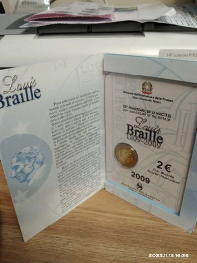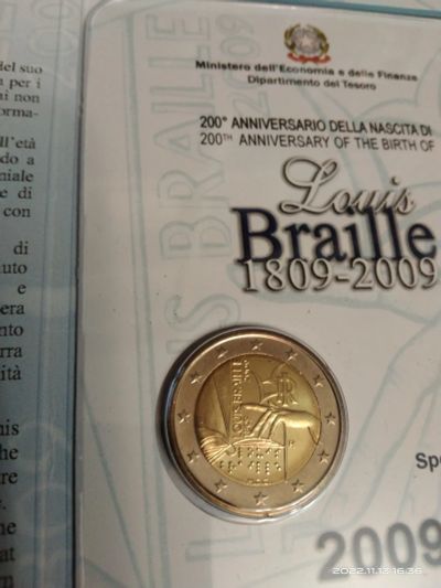 Италия 2 евро 2009 200 лет со дня рождения Луи Брайля BU оригинальный буклет блистер