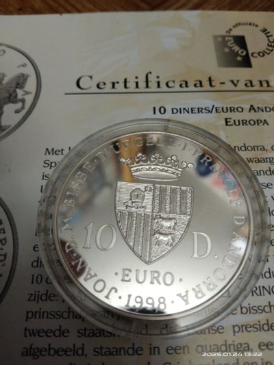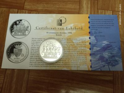 Андора 10 динар евро 1998 Европа Proof Сертификат