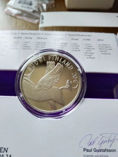 Финляндия 20 евро 2014 Туве Янсон 100 лет Proof cеребро Ag футляр сертификат