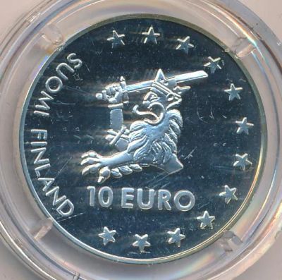 Финляндия 10 евро 2002 лингвист Элиас Лённрот 100 лет cеребро Ag Proof капсула