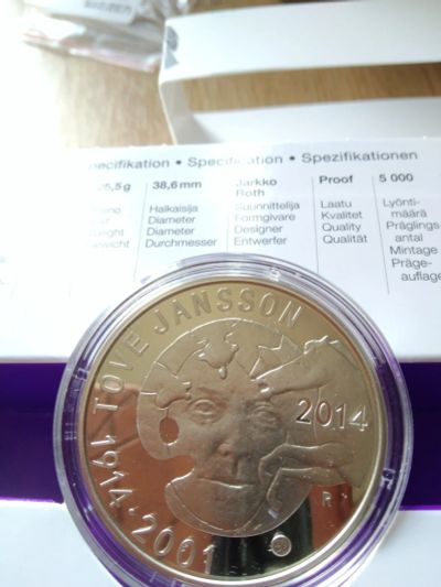 Финляндия 10 евро 2014 Туве Янсон 100 лет Proof cеребро Ag футляр сертификат