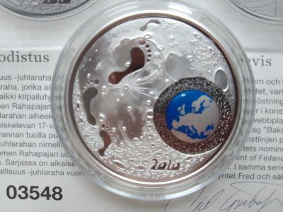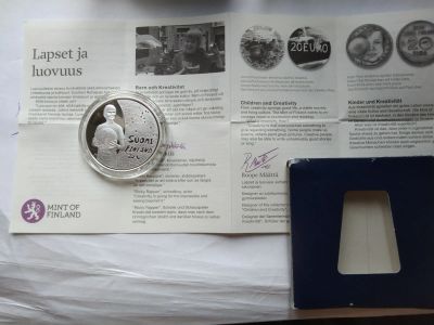 Финляндия 20 евро 2010 дети и творчество коробка капсула cеребро сертификат Ag Proof цветная