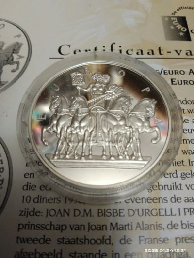 Андорра 1998 10 динаров Европа колесница Proof Сертификат Ag Серебро капсула
