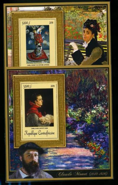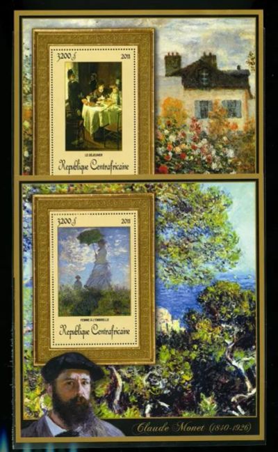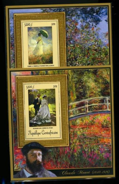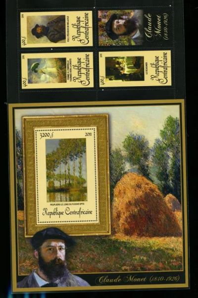 ЦАР 2011 Серия " Клод Моне " комплект 13 блоков и 4 малых листа 4х2